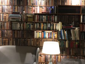 Bei Café und Kuchen, Eiscafé und Eisbecher oder auch zu einem guten Essen. Reist man an, empfiehlt es sich in der großzügigen Lobby zu verbleiben mit bequemen Sofas, ein Chesterfield-Ledersofa und solche aus Stoff. Eine Büchertapete ziert die Rückwand. Indes sind auf den Regalen erlesene Kunstbücher und anspruchsvolle Werke der Weltliteratur hinzugefügt worden, überwiegend durch den Autor dieser Zeilen, der durch diese Leihgabe auf Zeit versucht das Interesse an Kultur zu fördern und natürlich seine eigenen Muße und Arbeits-Stunden hier ein wenig angenehmer zu gestalten sucht.