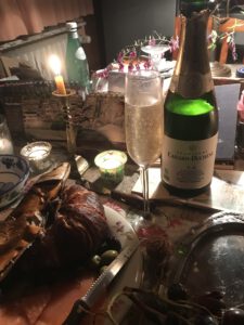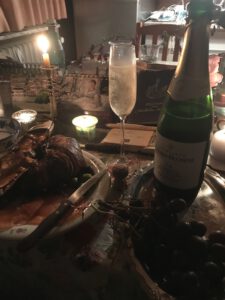Ich probierte diesen feinen Champagner extra Brut in der O,75 Liter Flasche aus besonderem Anlass unlängst abends zu Lachs mit Bio-Oliven und einer geräucherten Makrele mit Croissant und Brot in gemütlicher Stimmung bei Kerzenschein von Bienenwachs-Kerzen.