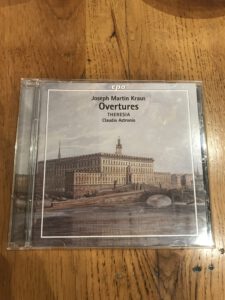Eine Aufnahme verschiedener Ouvertüren zu Opern und Kantaten von Kraus bietet das Album mit dem Orchester Theresia unter dem Dirigat von Claudio Astronia. Darunter ist die fast präromantisch aufgewühlte Ouvertüre zu Kraus musikdramatischem Haupwerk Äneas in Carthago und ein Vorspiel zu einem Akt daraus zu hören. Genauso sind die beiden Einleitungen zu der großartigen Trauermusik auf König Gustav III eingespielt. Auch die Ouvertüren zu den Opern Proserpin und Soliman sind zu finden und andere Stücke mehr.