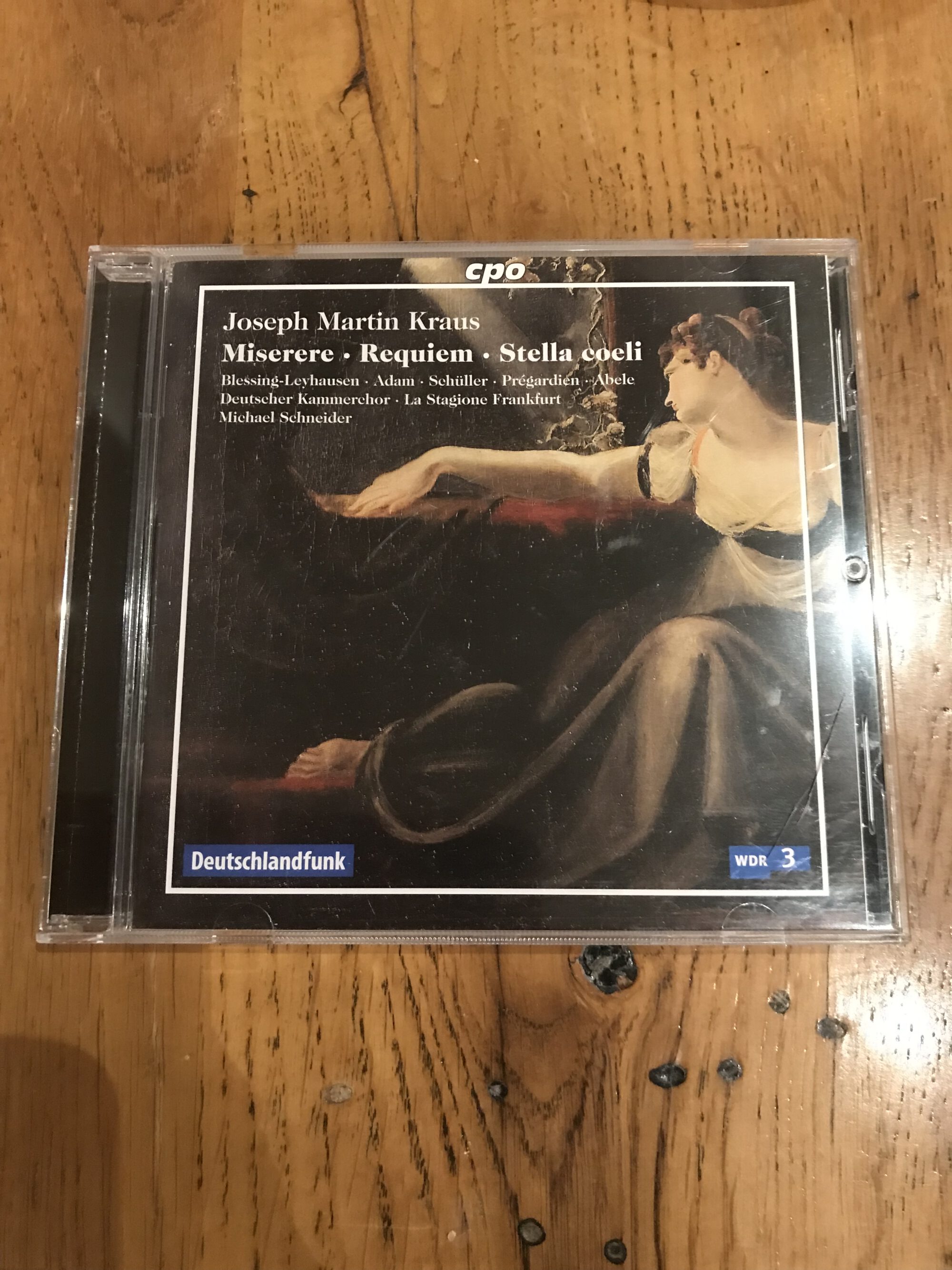 Eine davon bringt Ausschnitte aus seinem geistlichen Werk, die bemerkenswert sind. Darunter ein Miserere und ein Requiem aus seiner frühen Zeit. Ferner ein Stella Coeli, ein Auftragswerk für die Abtei Amorbach anlässlich der Orgelweihe dort, während eines Besuchs in der Heimat entstanden, als Kraus schon in Schweden engagiert war.