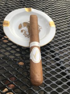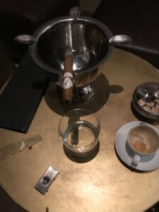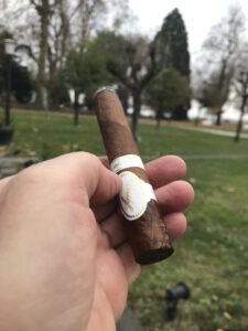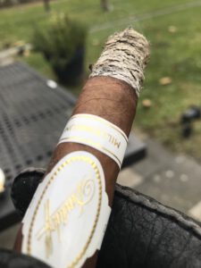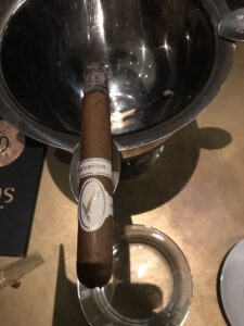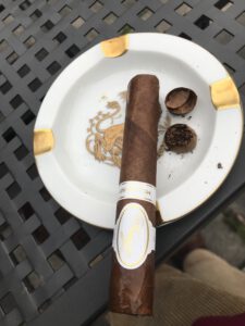 Ein besonderes Schmankerl ist das Robusto-Format mit dunkelbraunem Maduro-Tabak aus der Millenium Serie. Es war schon kalt, als ich dies auf derselben Hotel- Terrasse ebenfalls als Digestiv nach Entenbrust mit Rotkohl an Kartoffeln und Champignons mit Majoran abgerundet und mit Rotwein als Begleiter zu mir nahm. Das leicht ölige Deckblatt gefiel, die feine Äderung wie schon der Kaltgeruch nach Mokka und Zartbitter-Schokolade verführte. Das erinnerte mich dann fast an Havanas der Marke Partagas.